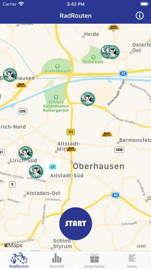 Die Stadt Oberhausen ist bestrebt, den Radverkehrsanteil zu steigern und hierdurch unter anderem die CO2-Bilanz zu verbessern. Neben Maßnahmen zur Verbesserung der Radverkehrsinfrastruktur sind hierzu auch Kommunikations- und der Servicemaßnamen für den Radverkehr erforderlich. Mit Fördermittel des Bundesministeriums für Verkehr und digitale Infrastruktur wurde die Smartphone App „RadRouten Oberhausen“ für den Radfahrer in Oberhausen entwickelt, welche einen wichtigen Beitrag zur Radverkehrsförderung leisten soll.