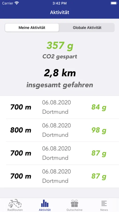 • Aufzeichnung und Statistik der Radfahrten