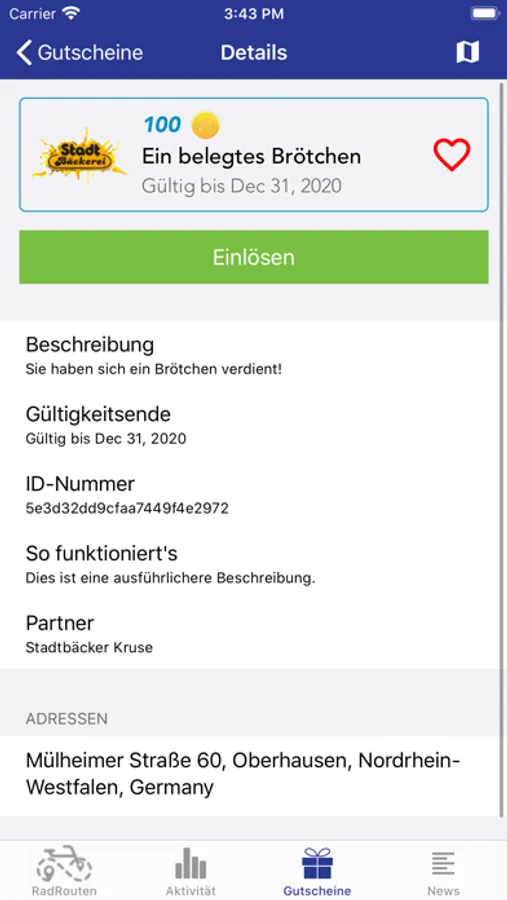 Die App verfügt über verschiedene Funktionen, wie Navigation, Point of Interest (PoI) und Anzeige von eingespartem CO2 und Treibstoff sowie den Kalorienverbrauch. Als Besonderheit bietet die RadRouten App den Nutzern ein Belohnungssystem. Pro gefahrenen Kilometer wird ein Punkt als RadMünze auf dem Nutzerkonto gutgeschrieben. Die gesammelten RadMünzen können dann bei teilnehmenden Bounspartnern in Form eines Gutscheins eingelöst werden. Die Gutscheinerstellung, -verwaltung und -einlösung erfolgt dabei über die App.