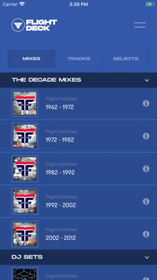 Jump into a decade, fire up a mix. The Flight Deck app experience has a unique player with info about the track at specific intervals.