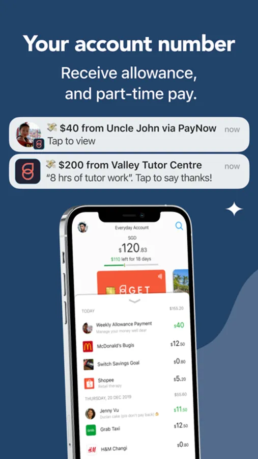 The Get app helps parents and kids manage their accounts on the go. To join Get or just learn more, visit us at www.useget.com. Open an account online within minutes and get started for free.