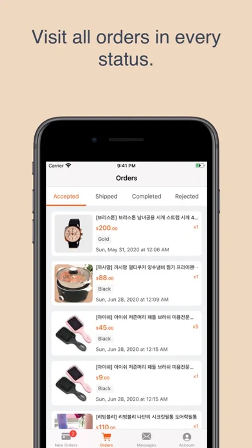 Manage all orders from your customer by accept, reject or mark current order as shipped, so your customer will know current status for their orders.