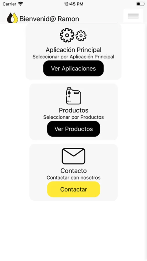 Desde la aplicación, se puede enviar email para la compra del producto según envase de manera rápida.