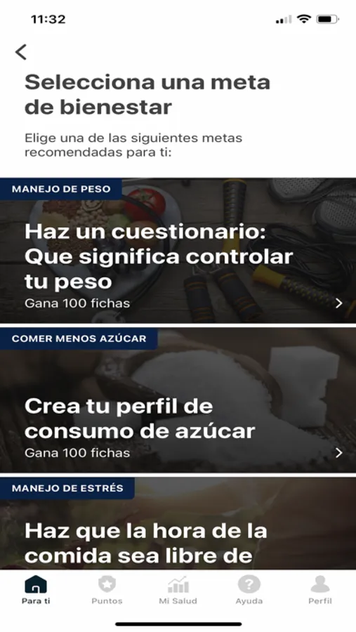 Esta aplicación te ayuda a evaluar tu salud en general, como bienestar mental, físico, nutrición y además de motivarte, ¡ganas puntos! los cuales te harán ganar recompensas.