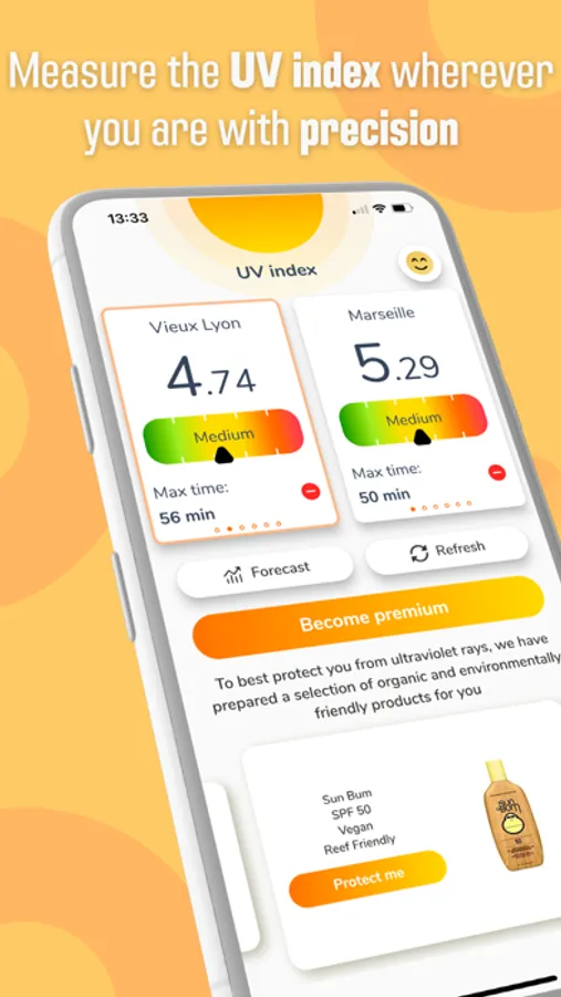 This version also offers you daily morning notifications to inform you of the intensity of the UV index during the day and prepare you as well as possible!