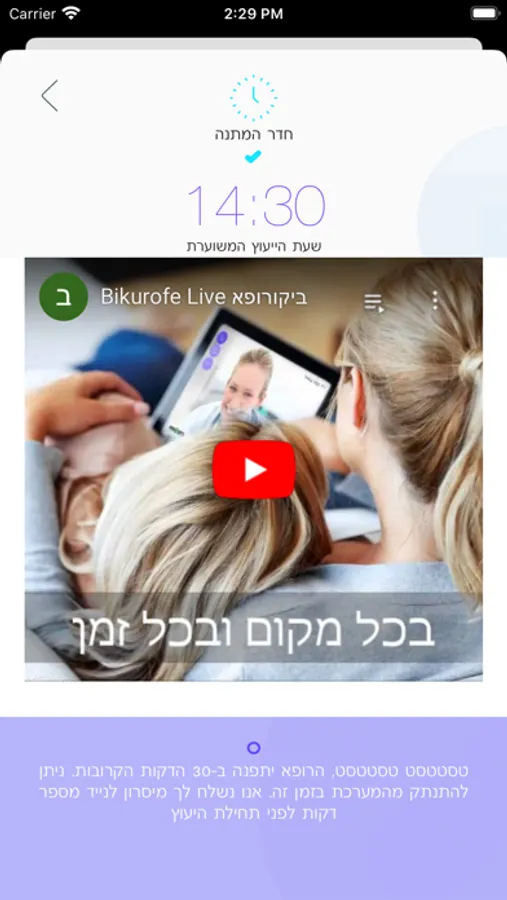 באמצעות האפליקציה ניתן להתייעץ עם רופא משפחה, רופא ילדים ורופאים מומחים בשיחת וידאו באמצעות הטלפון הסלולארי, המחשב או הטאבלט.