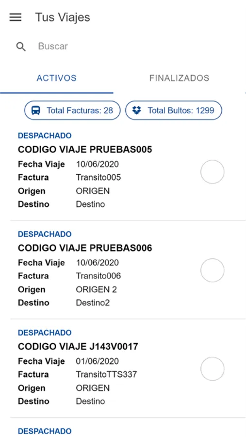 Aplicación desarrollada para dar visibilidad de los viajes, sus destinos y el cumplimiento de entrega de los productos. En esta aplicación también se puede obtener el tracking del dispositivo móvil que debe dar cumplimiento a su ruta, esta aplicación posee perfiles tanto para quien debe realizar las entregas como para quien debe recibir los productos.