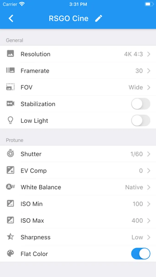 • change any settings including Protune parameters
