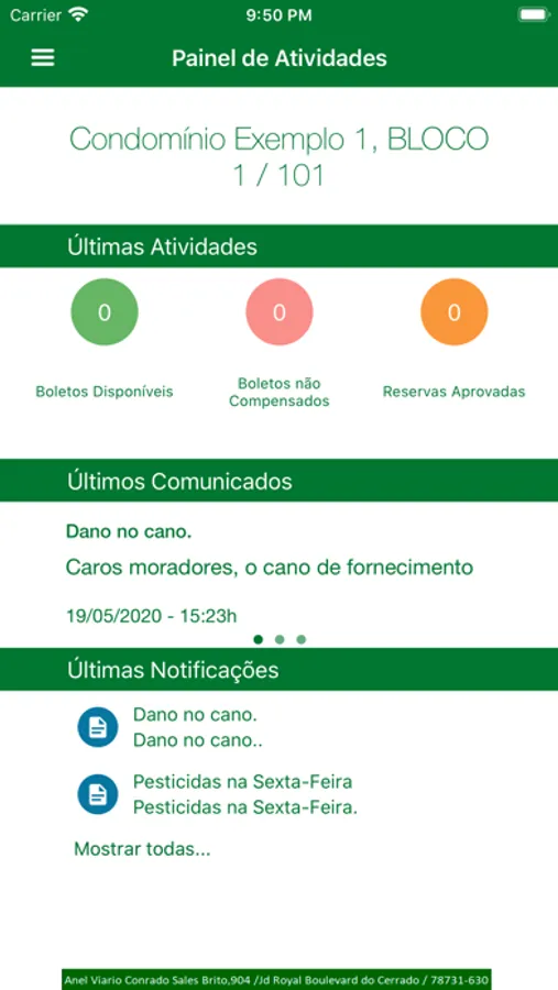 Visualizar cobranças em aberto da sua unidade e obter 2ª via de boletos (com recálculo automático de multas e juros);