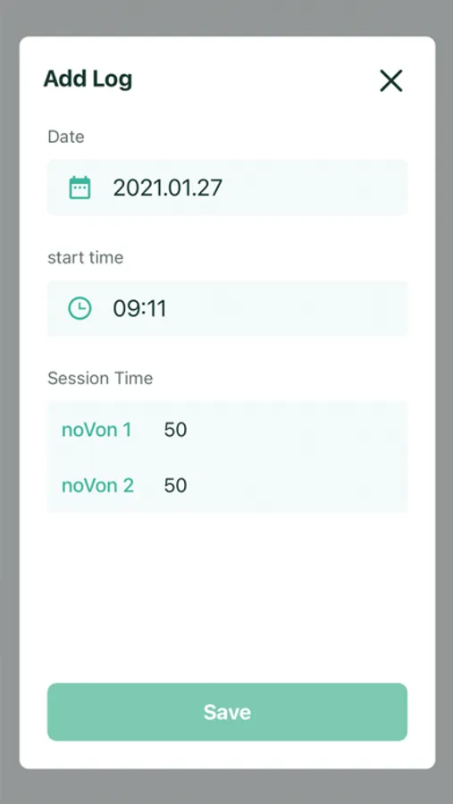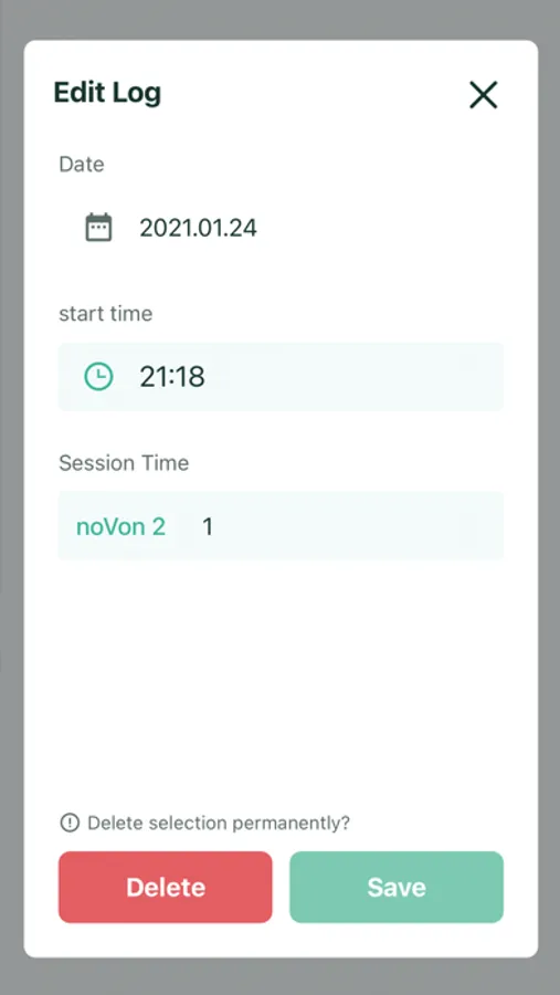 - Keep track of your sessions. (Save / edit / delete/ manual input)