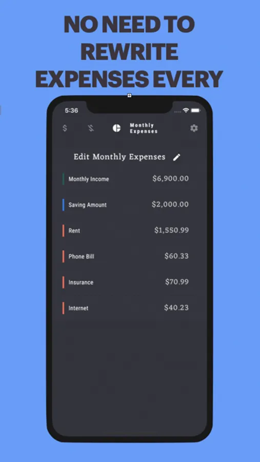Just write your monthly income, the amount of money you want to save, and your expenses.