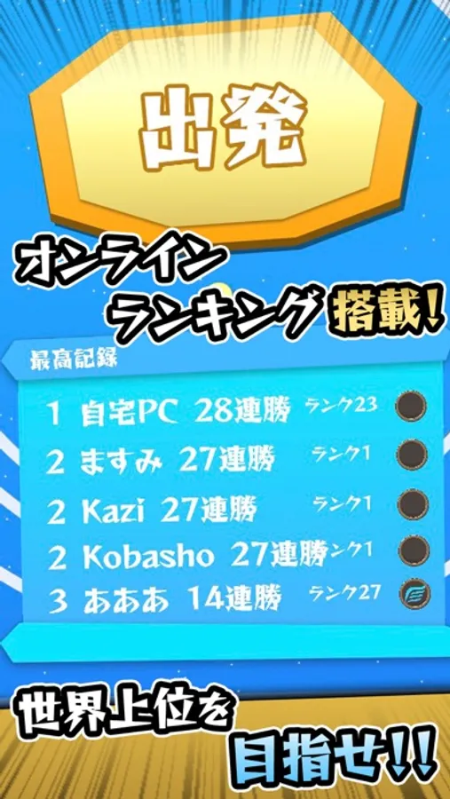世界の最高記録上位5位までが表示される『オンラインランキング』機能搭載!!