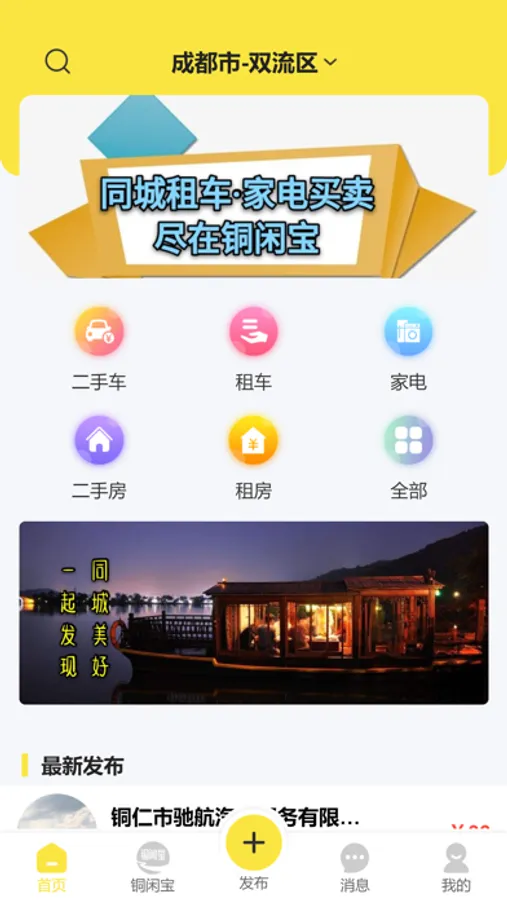 一款专注于同城美好事物发布平台,让您足不出户线上了解信息,线下交易平台,更快找到自己所需物品,让二手车、汽车租赁、租房、二手房、闲置家电、酒店、特色农产品、休闲娱乐、餐饮、工作招聘、同城生活圈不再闲置。