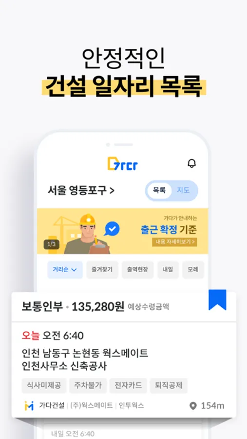 노가다 아닌 가다에서 건설 일자리와 일용직 일당을 당일 지급 받으세요.