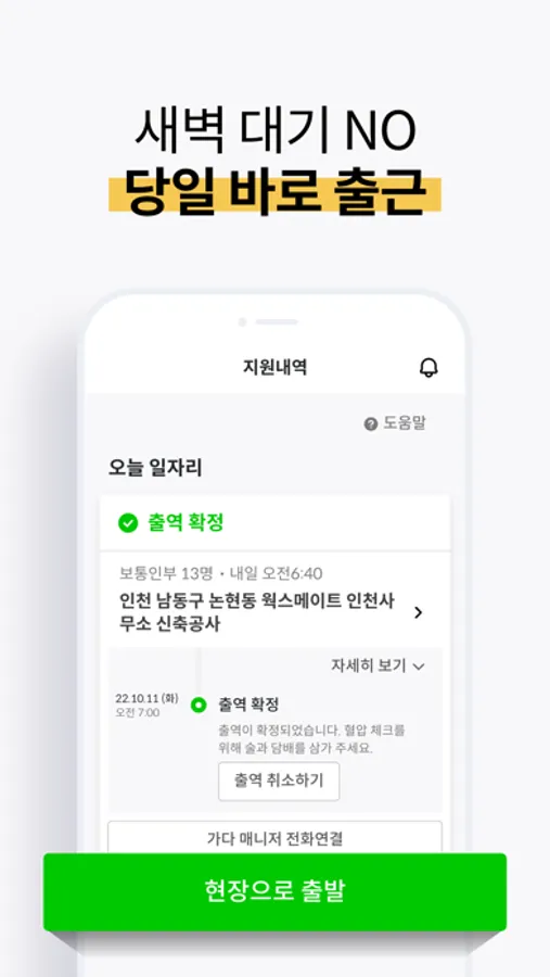 1. 당일 현장으로 바로 출근 - 새벽에 인력사무소 앞에서 줄 서지 않아도 된다.