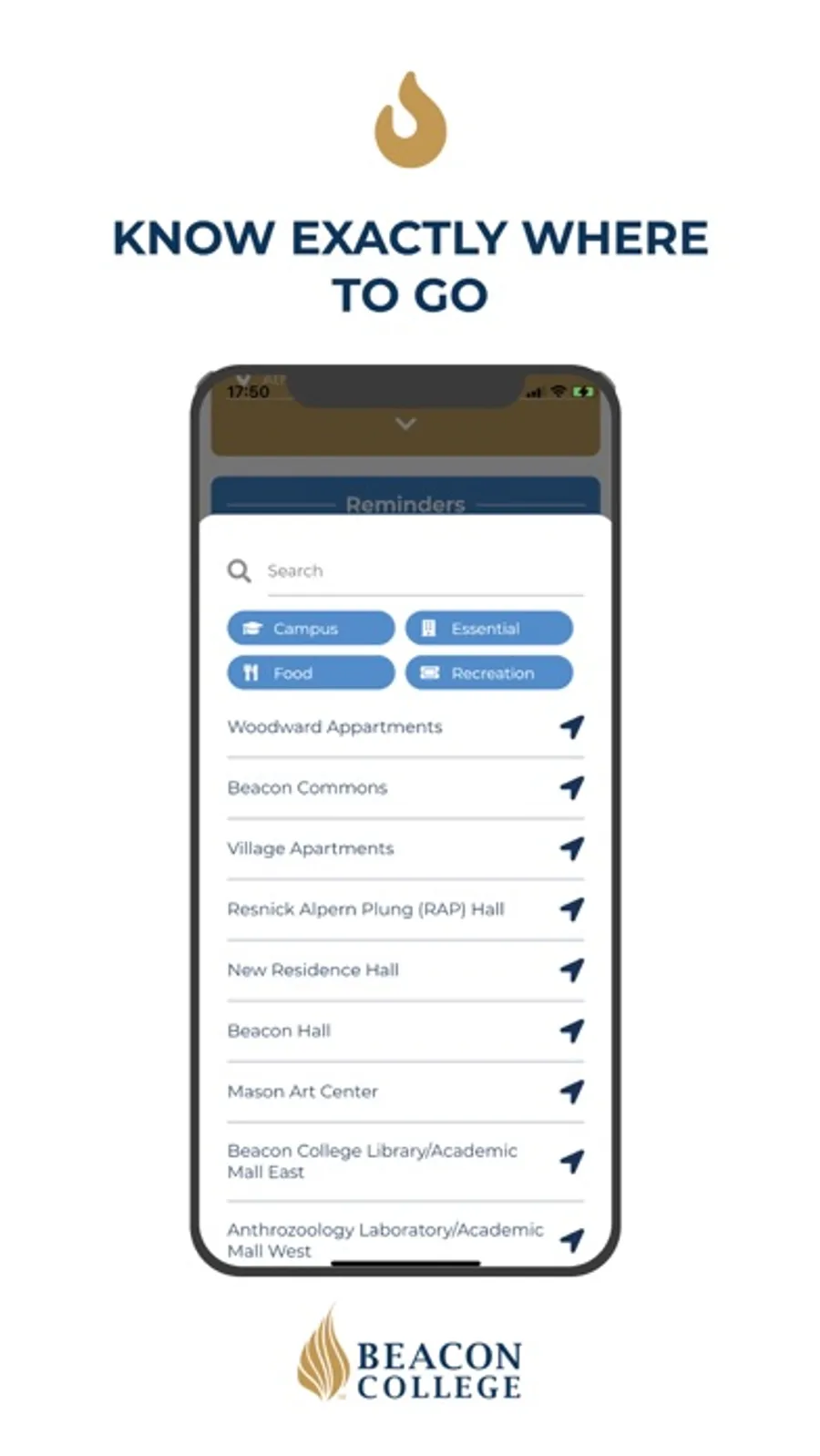 MyBeacon is the College’s signature, readily accessible tool for student navigation of all things “Beacon.” Simply access the menu and the resources of the College are yours. Want to know about Campus Dining, Transportation, or Student Events? They are yours. Need to access either your Canvas LMS platform or the Student Portal? Click and log in. Campus locations and local amenities (banks, restaurants, shopping) are identified and mapped for you. Contacting important offices on campus by phone or email is simplified.