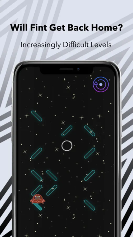 Help Fint get back to Earth by guiding him through the obstacles and adjusting his trajectory path.