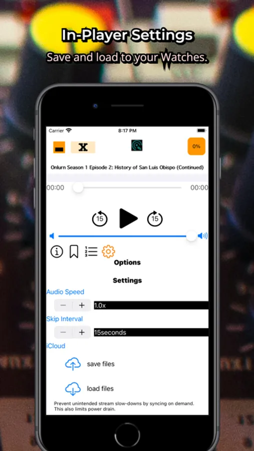 You can also, use our data your way with Onlurn. Our advanced settings allow you to adjust the audio playback speed, skip interval, audio interaction options, and more. And with our iCloud feature, you can easily transfer your playlists and favorites to any device.