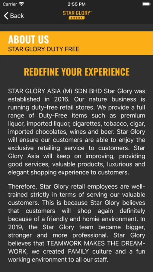 Star Glory Group is an exceptional Duty-Free Operator with exquisite outlets in Duty-Free Trade Zones around Malaysia. We offer multiple ranges of established brands of products across the country.