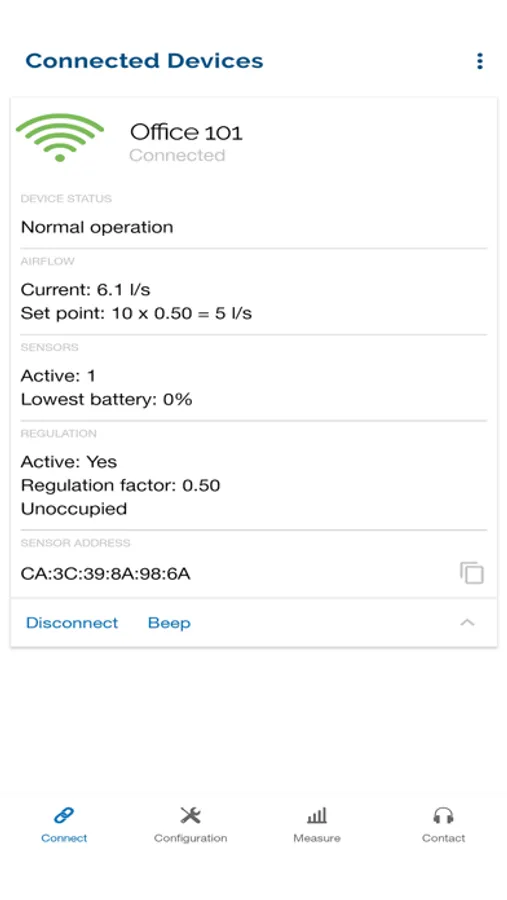 The app connects via Bluetooth to the product installed in ventilation ducts. Since the product is usually mounted in or near the ceiling, with the OneLink app an installer can remotely change the settings from a distance, standing on the floor.