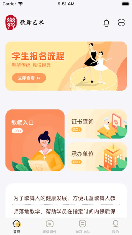 歌舞艺术App是光映星空(北京)国际文化有限公司研发的一款专注于艺术教育的App。