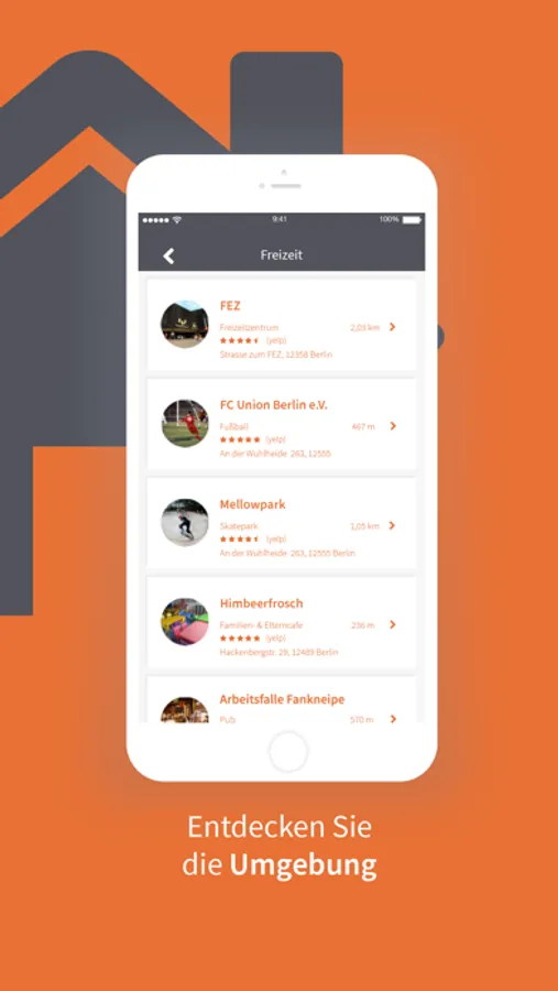 Informieren Sie sich z.B. über Geschäfte, Ärzte, Erstatten und über die Öffnungszeiten in Ihrer unmittelbarer Umgebung.