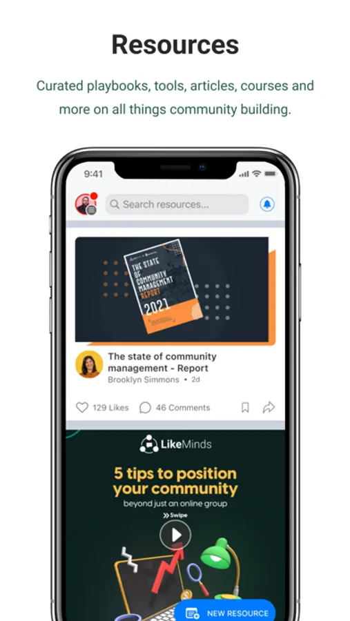 Find relevant case studies, guides, and frameworks in the resources feed to understand the use case of a community for your venture.