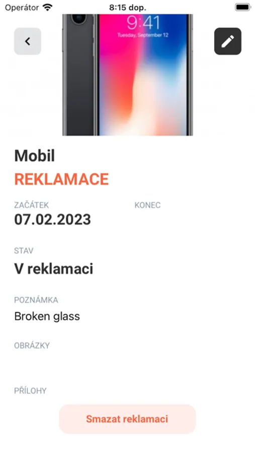 - Přílohy / obrázky výběrem z galerie v zařízení nebo přímým vyfocením.