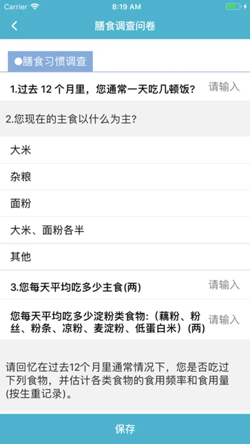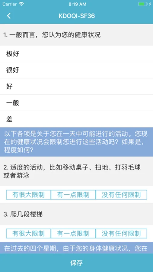 4、各类评估信息,包括握力检测、脆弱指数、SF36、膳食调查问卷等