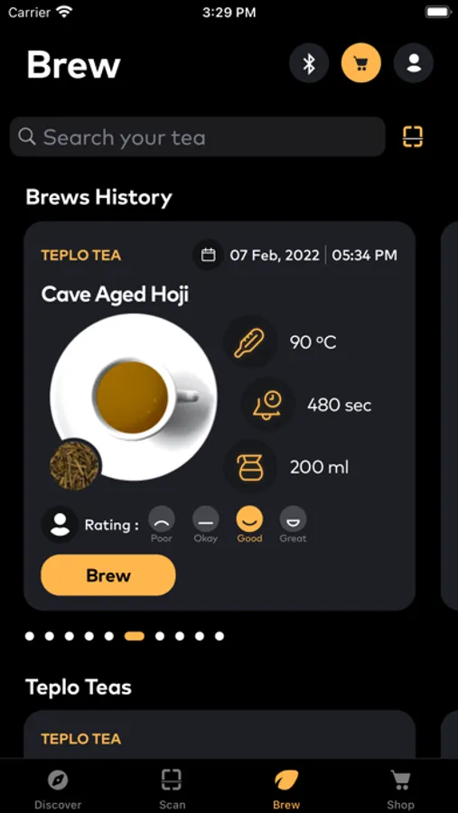 SCAN YOUR TEA - Scan the QR code on the teplo tea package and begin brewing immediately.