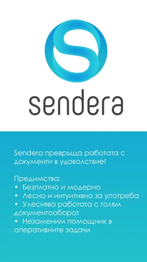Със Sendera правите снимка или споделяте файл директно от Вашето мобилно устройство. Преди изпращането разполагате с опция за добавяне на допълнително пояснение към документа като вид, начин на плащане и забележка със свободен текст. Файлът автоматично се изпраща разпределен в папка на компютъра на получателя. Използвайки Sendera си осигурявате изцяло дистанционен, по-спокоен и организиран процес на работа.