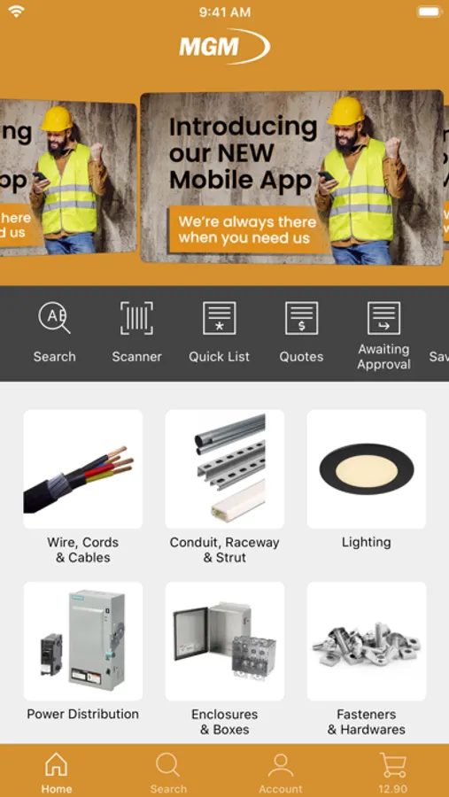 Shop more than 8000 products with descriptions, images, spec sheets, availability, and price. Place your order any time with the branch closest to you for quick pick up or delivery. Never miss amazing deals, compare prices, and track your orders easily with the MGM Electric Shopping App.