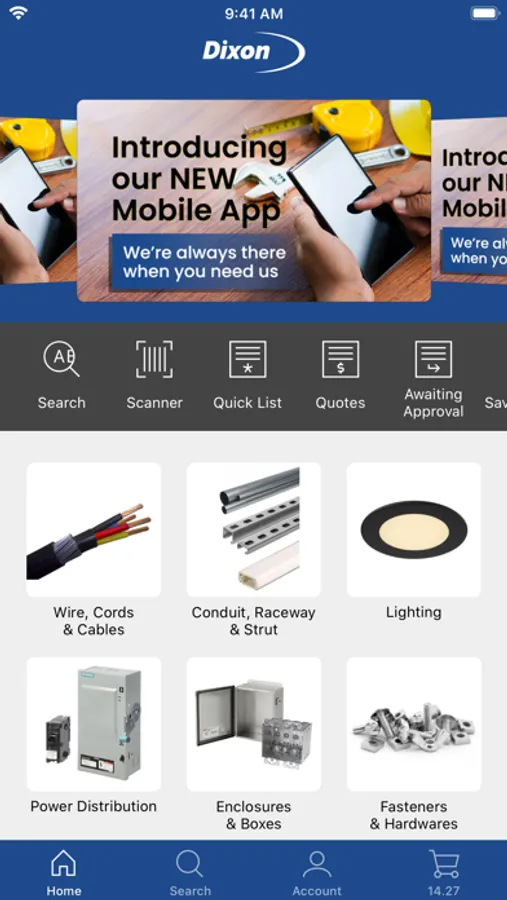 Shop more than 42000 Vale-approved products with descriptions, images, spec sheets, availability, and price. Place your order any time with the branch closest to you for quick pick up or FREE delivery. Never miss amazing deals, compare prices, and track your orders easily with the Dixon Electric Shopping App.