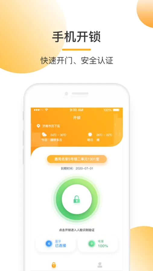 人脸识别:手机APP人脸识别一键快速开锁,准确率高达99%。