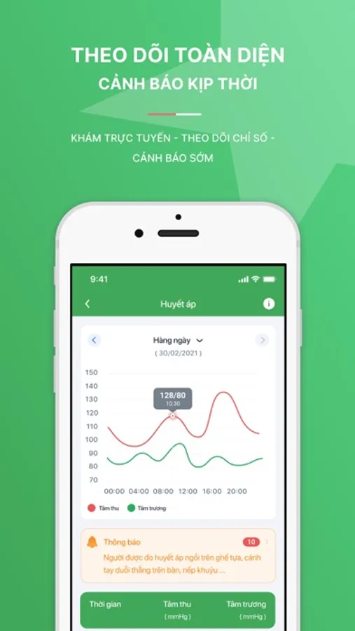 - Quản lý, theo dõi và điều trị bệnh mãn tính thông qua các chỉ số, biểu đồ, bác sĩ can thiệp sớm, cảnh báo vượt ngưỡng nguy cơ cao cho người thân