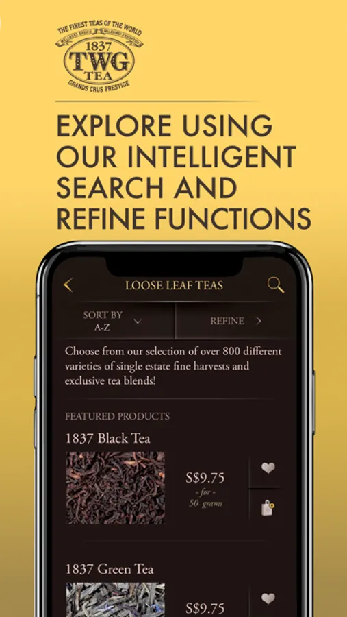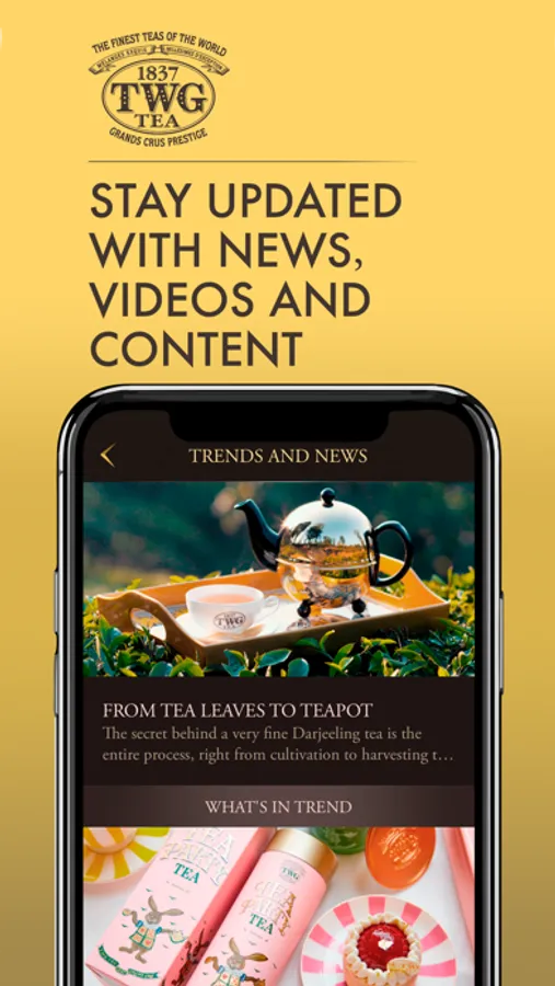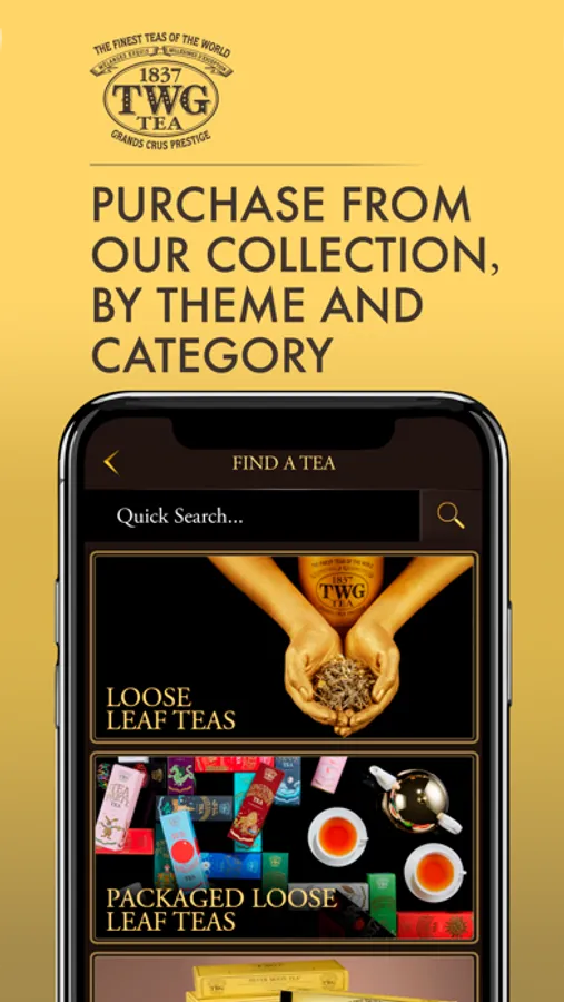 Welcome to the TWG Tea Mobile App where you can shop the finest teas of the world in the palm of your hands!