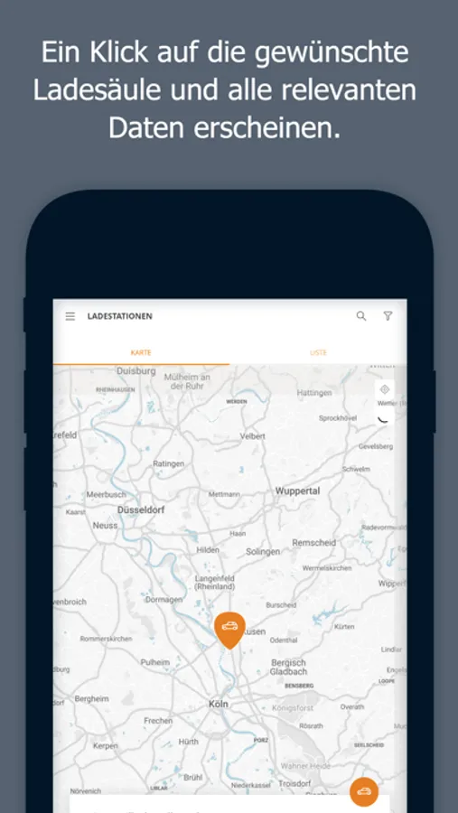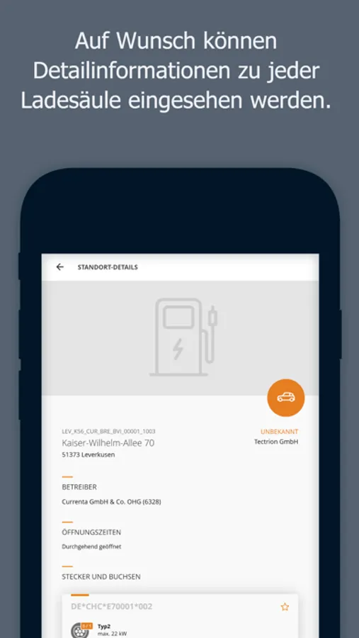 Smartphone-App zum Zugang zur Currenta YourCharge E-Mobility Ladeinfrastruktur