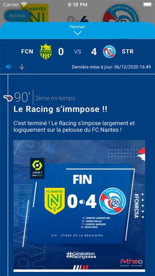 Connectez-vous avec votre compte Racing et accédez à l’ensemble des contenus du club depuis votre smartphone :