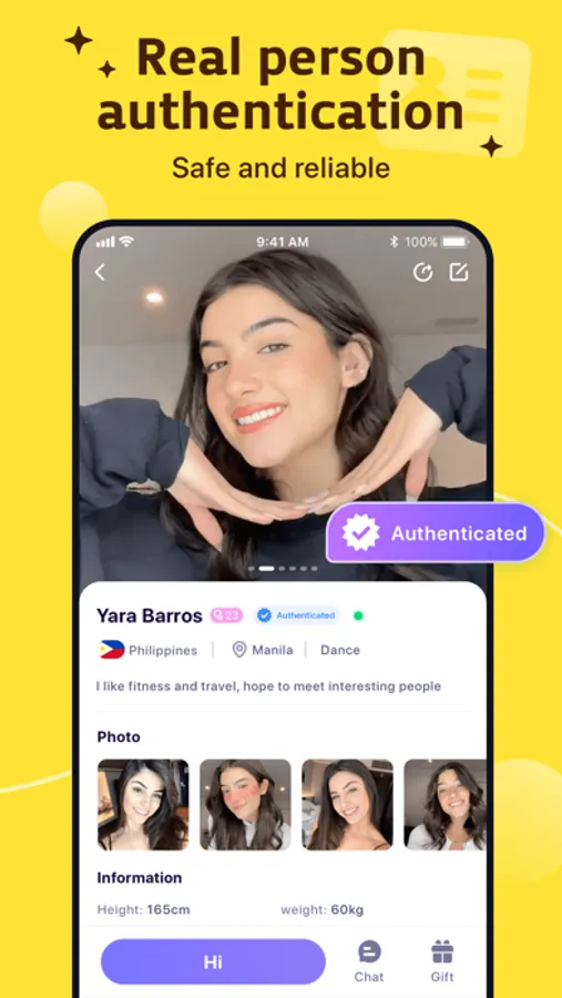 MeYo strictly restricts any fake or robot users by demanding two-factor, machine+artificial, authentication of any new users before they can proceed chat. More than 90% users have done identity authentication as result of our dedication and commitment to a truthful social platform.