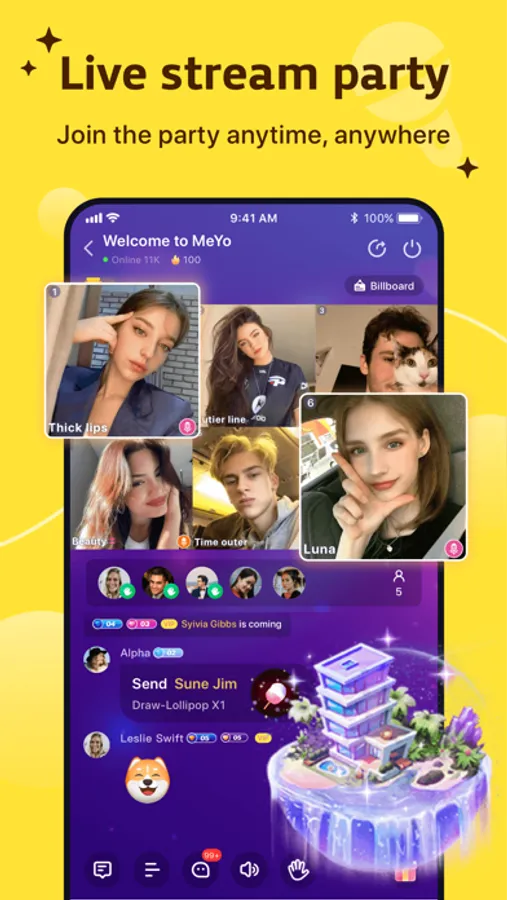 In MeYo, you can play with others nearby in the city by text, voice, image or many other ways to make friends easily!