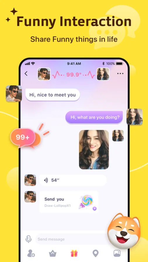 Making friends is no more impossible! MeYo helps you break ice by quickly start chatting; as intimacy rises, it unlocks more and all interactive & interesting features.
