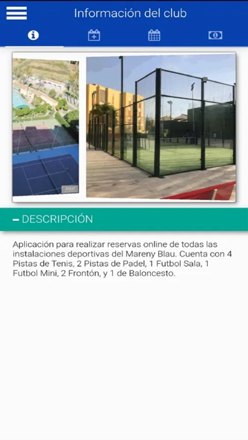 Aplicación para realizar reservas online de todas las instalaciones deportivas de la Comunidad de Propietarios Mareny Blau.