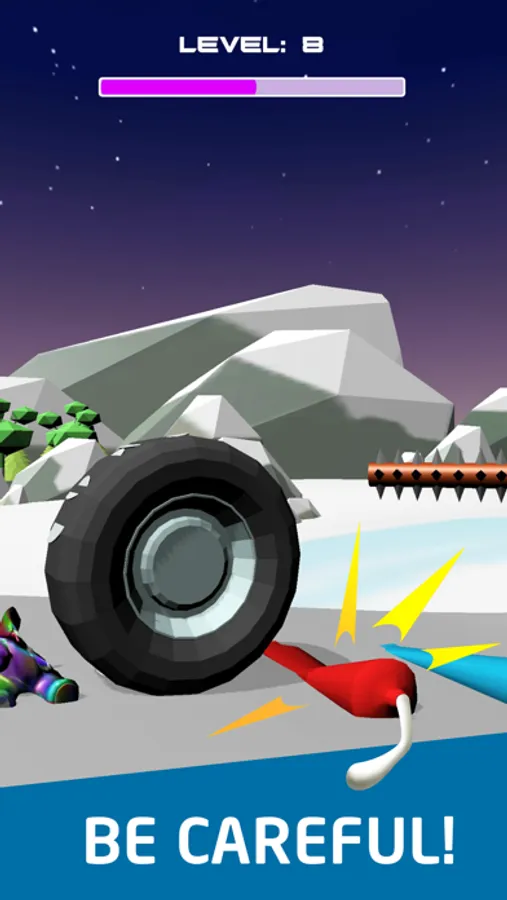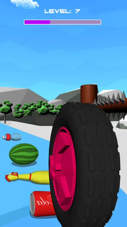 Let's crush everything on the road and smash all the way down! Have many different types of objects available to crush!