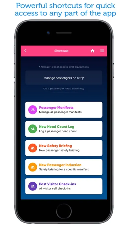 • Create passenger manifests and do live head count logs