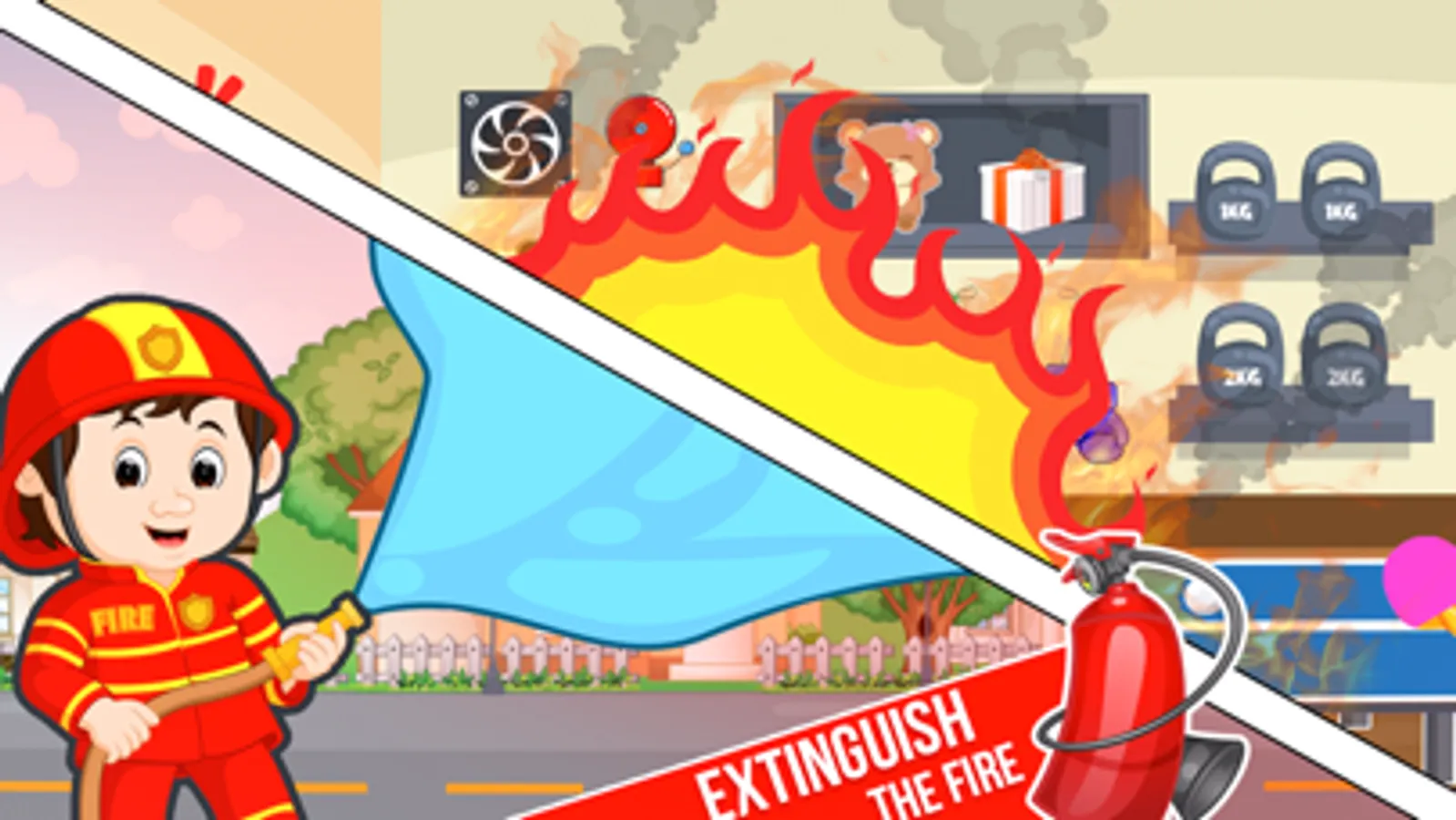 Become a fireman! Pretend to play the fire station gives you the opportunity to discover hero stories with your imagination in pretend kids firefighter game. Play in your own doll house and make the story of saving citizens from fire incidents. Wear your fireman outfit with gloves, a helmet, boots and take out a fire truck in the city. Rescue people from accidents and be the hero that this town needs. Learn about the gear firemen use on the job. Train how to handle different dangerous situations. Learn about the dangers of electricity, gas and oil during a fire in the house and how to put out different kinds of fire. Help people in the hours they need in city houses; plunge into burning buildings, and remove obstacles with appropriate tools and put out the fire; get ready and follow your orders; Check the city surveillance system at the fire station and turn yourself into a brave firefighter when needed.