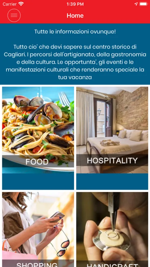 MY CAGLIARI APP è un’applicazione nata e creata per permettere sia al turista che al cagliaritano di fare un viaggio esperienzale all’interno del centro storico della città di Cagliari attraverso percorsi enogastronomici, culturali, di shopping, hotel, affittacamere, altresì tantissime attività dove l’anima artigiana batte nel cuore pulsante della città. Il tutto per organizzare al meglio il tuo soggiorno, usufruendo di tantissimi sconti scaricando la nostra App da utilizzare in tutte le attività presenti.