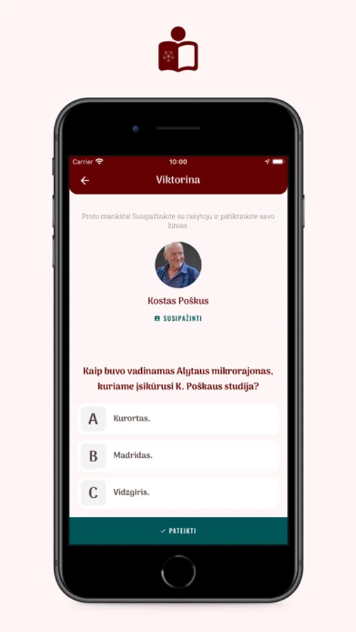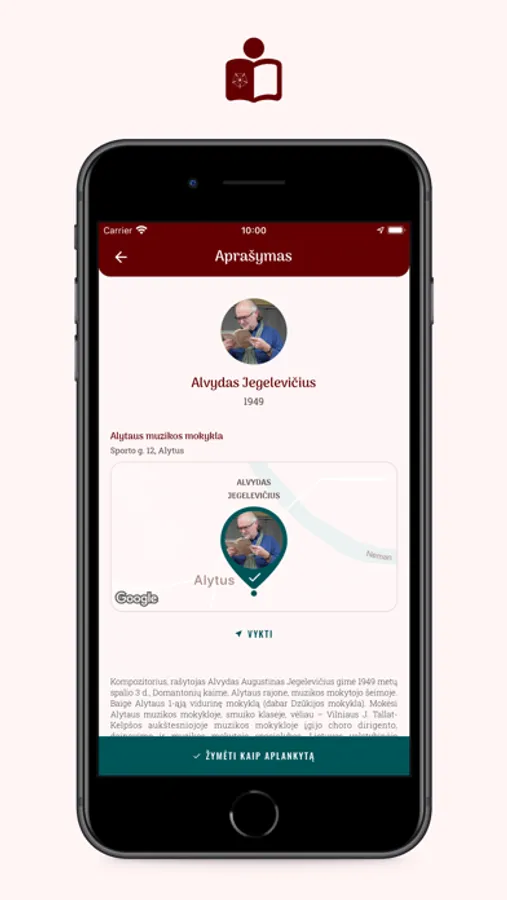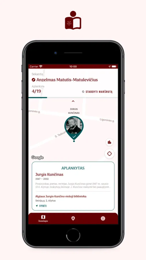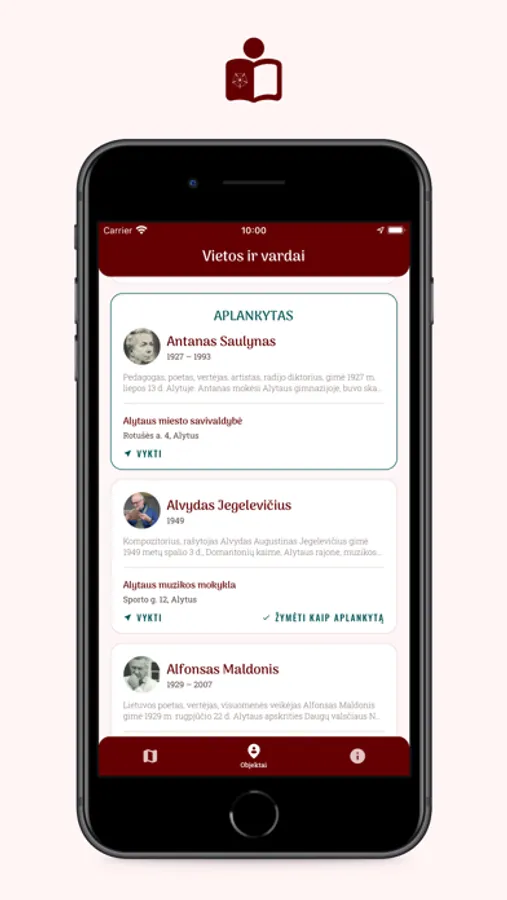 Jūs užklydote į literatūrinį Alytų. Čia galite pasisemti žinių apie iškiliausius šio krašto rašytojus bei kūrėjus, pamiklinti ne tik kojų raumenis, bet ir padaryti proto mankštą, kadangi Jūsų laukia viktorina su galimybe laimėti šaunius prizus. Sakote per sunku? Visai ne! Mes pateiksime išsamius asmenybių aprašymus, informatyvų žemėlapį, o Jums tereikės apsiauti patogius batus ir PIRMYN! Leiskitės į vietų ir vardų kelionę.