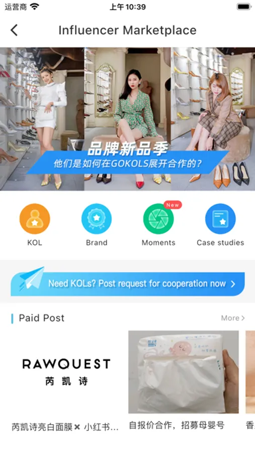 GOKOLS is also like KOL's "LinkedIn". KOLs can find suitable jobs through GOKOLS platform, and show themselves via moments to brands.