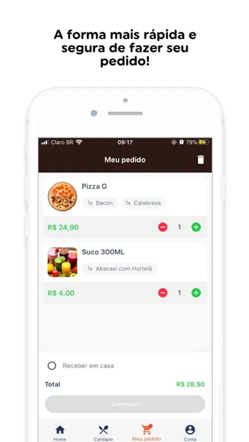 No app, você encontra o cardápio completo dos estabelecimentos e ainda pode utilizar a ferramenta de busca para localizar diretamente os produtos que você deseja. Isso tudo de forma prática e rápida. Além disso, no app você fica por dentro de todas as nossas promoções e tem acesso exclusivos à descontos especiais!