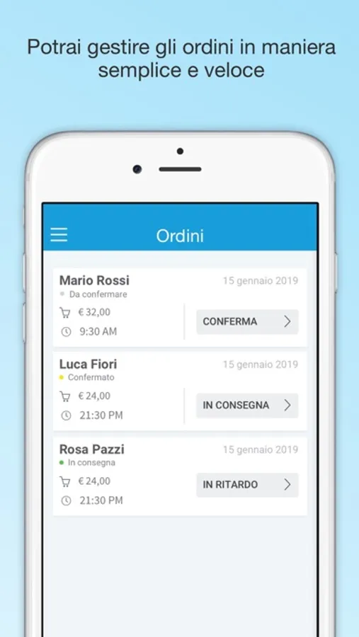 - Visualizzare gli ordini ricevuti con tutti i dettagli